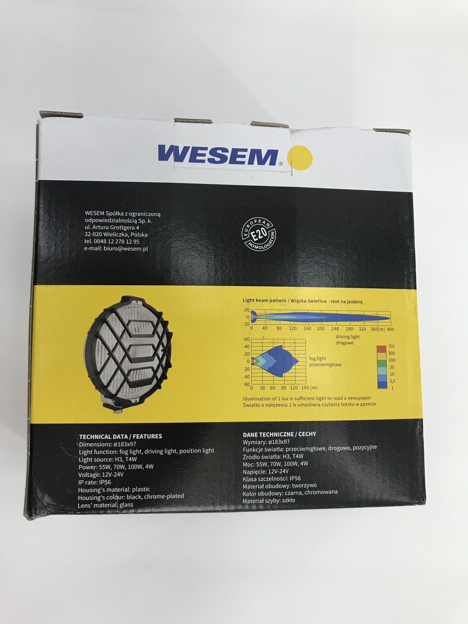 Фара Wesem 14960-это самая популярная из крупных, круглых противотуманок. Размеры: диаметр-183 мм, высота до крепления-219 мм, вылет-97 мм. Может ставиться как на бампер, так и под бампер. Оптический элемент можно переворачивать. Имеет цоколь H3, без габаритной лампы. Создаёт мощный световой поток прямо перед носом автомобиля и далеко по сторонам. Сделана по старой школе: железный отражатель и настоящее стекло.