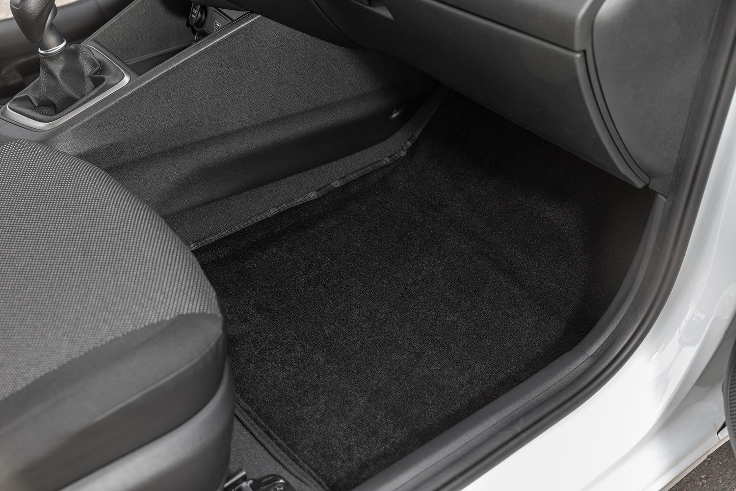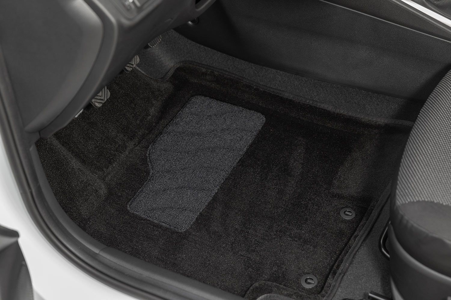 Ковры Seintex 88511 сделаны для Соляриса и Рио 2017+. Подойдут и на Rio X-Line. Это премиальные ворсовые ковры чёрного цвета с бортами от одного из лучших производителей. Ковры очень плотные и тяжёлые. Идеально повторяют каждый изгиб пола и чётко ложатся в штатные крепежи. Коврик водителя полностью закрывает место под левую ногу. Ковры повторяют цвет и текстуру ковролина автомобиля и практически незаметны на полу. Не промокают насквозь, благодаря резиновому слою внутри. Легко чистятся щёткой или пылесосом. На обратной стороне, по всей площади ковры имеют нескользящее покрытие из щётинок. Оно не мешает поднимать ковёр вверх, но не даёт ему скользить в продольном направлении. Ковры очень долговечные и годами могут не терять первоначальный вид. Кроме того, ковры очень комфортны зимой. Они не источают холод, как резиновые ковры и ногам будет теплее.
