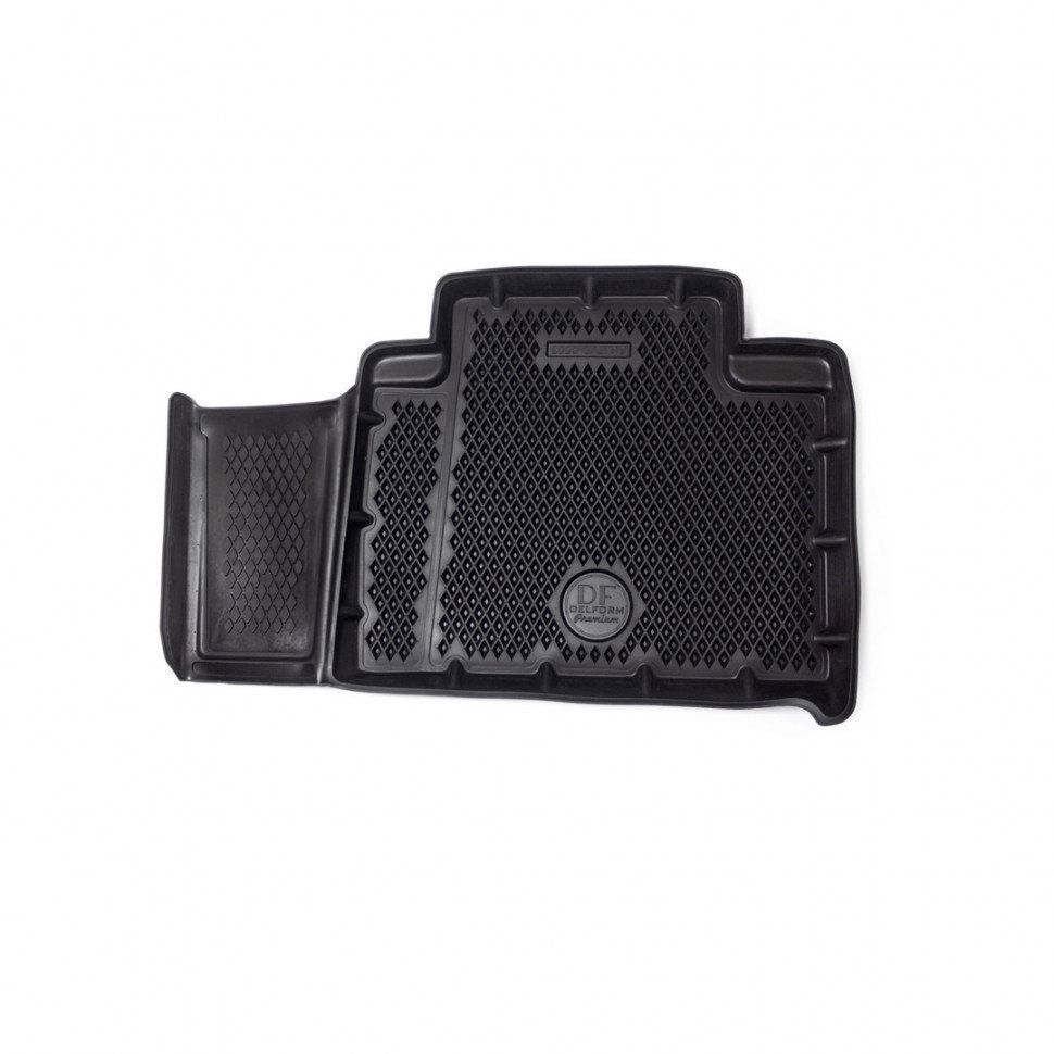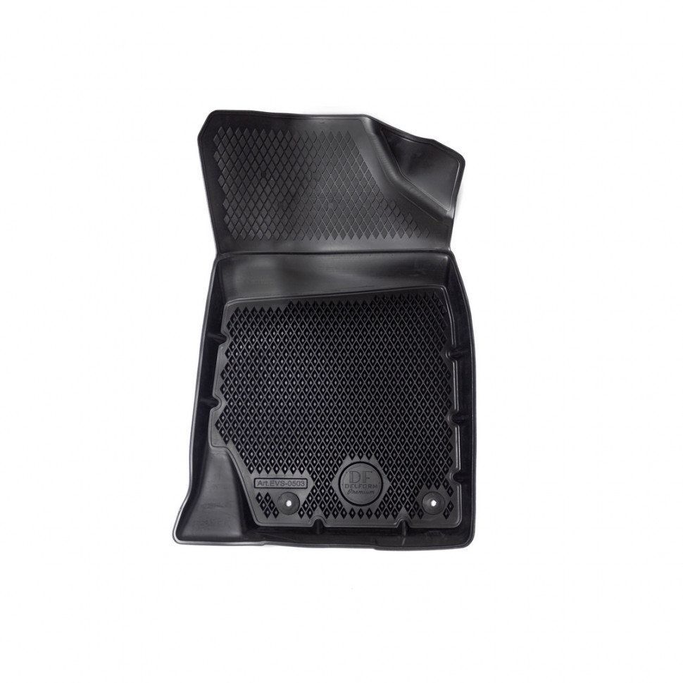 Ковры Delform EVS-0503 сделаны для Geely Atlas 2016+. Эти ковры похожи на привычные EVA ковры с бортами, но сделаны из тяжёлого, плотного полиуретана. Их ячейки крупнее и глубже привычных, поэтому задерживают больше воды и легче моются. Ковры очень точно отформованы и идеально повторяют каждый изгиб пола. Закрывают максимум пространства на полу. Чётко ложатся в штатные крепления. Коврик водителя отлично закрывает место под левую ногу и уходит глубоко под педали, что недоступно обычным EVA коврам. Ковры очень прочные и не нуждаются в подпятнике, так как протереть их вряд ли получится. Не дубеют на морозе и не имеют запаха.