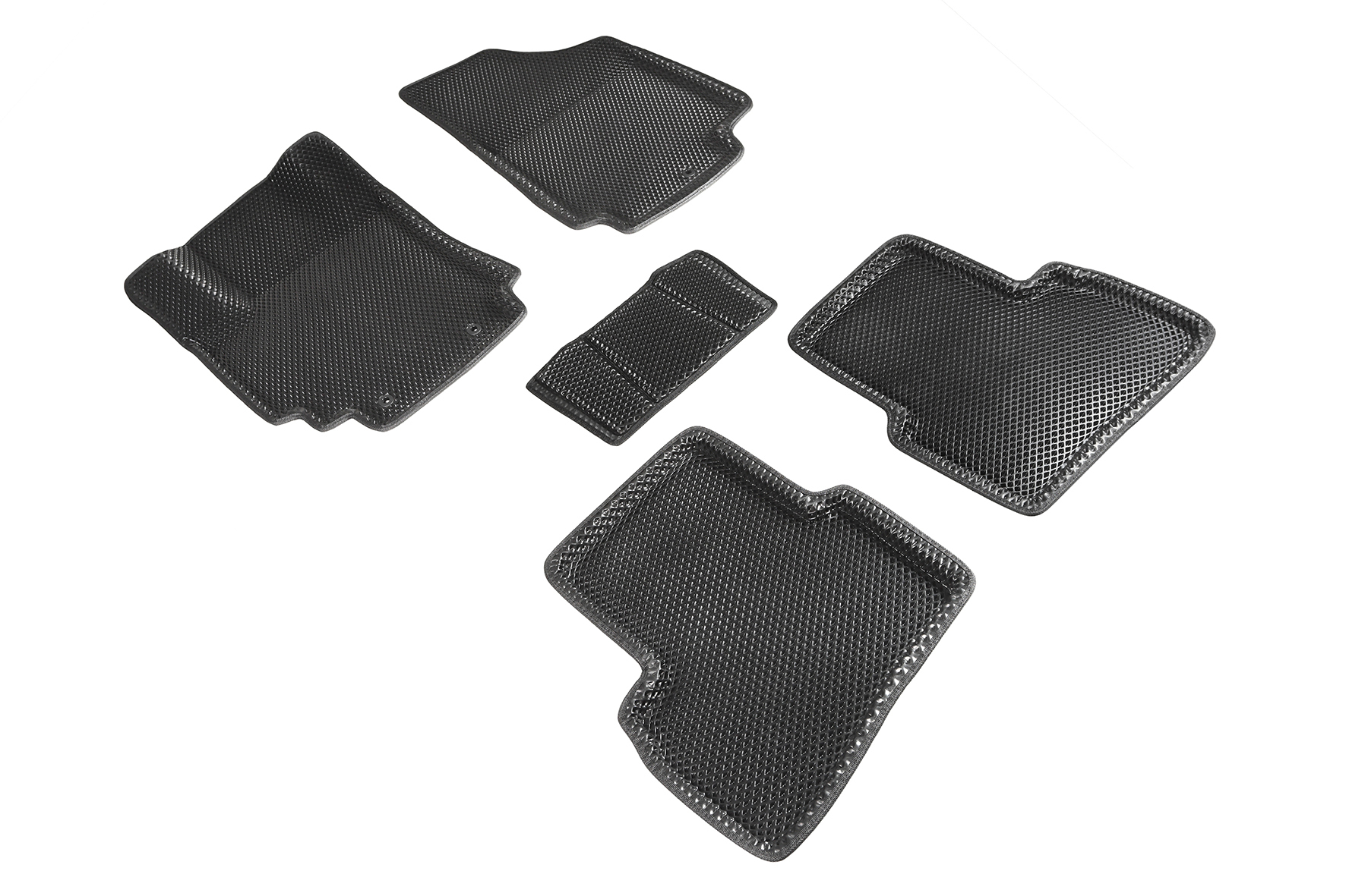 Ковры Seintex 95181 сделаны для Креты первого поколения 2016-21. Это качественные классические EVA ковры чёрного цвета с бортами и узором "ромб" от одного из лучших производителей. Ковры очень точно отформованы и идеально повторяют каждый изгиб пола. Чётко ложатся в штатные крепежи. На обратной стороне имеют нескользящее покрытие из щетинок. Оно не мешает поднимать ковёр вверх, но не даёт ему скользить в продольном направлении.