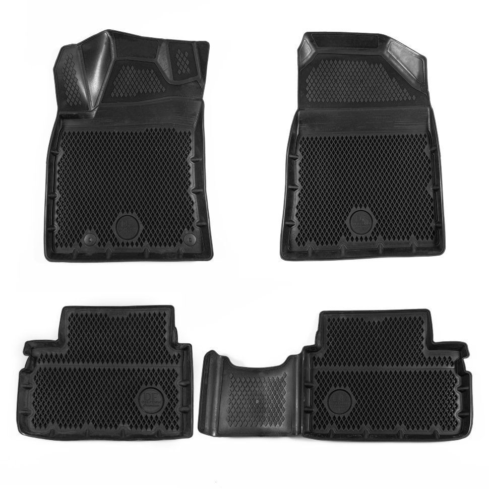 Ковры Delform EVS-0720 сделаны для Kia Ceed третьего поколения 2018-22. Подойдут и на хэтчбек, и на универсал. Эти ковры похожи на привычные EVA ковры чёрного цвета с бортами, но сделаны из тяжёлого, плотного полиуретана. Их ячейки крупнее и глубже привычных, поэтому задерживают больше воды и легче моются. Очень точно отформованы и идеально повторяют каждый изгиб пола. Чётко ложатся в штатные крепежи. Коврик водителя глубоко уходит под педали и отлично закрывает место под левую ногу. Ковры не имеют запаха и не дубеют на морозе. Очень прочные и не нуждаются в подпятнике. Протереть их вряд ли получится.