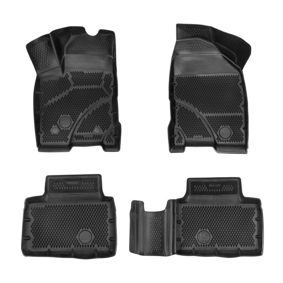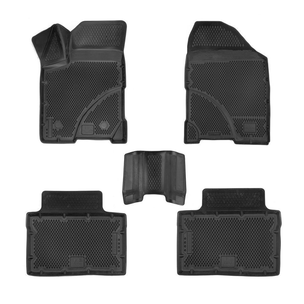 Эти ковры похожи на привычные EVA ковры чёрного цвета с бортами, но сделаны из тяжёлого, плотного полиуретана. Их ячейки крупнее и глубже привычных, поэтому задерживают больше воды и легче моются. Ковры очень точно отформованы и идеально повторяют каждый изгиб пола. Чётко ложатся в штатные крепежи. Закрывают максимальную площадь ковролина в ногах. Коврик водителя полностью закрывает место под левую ногу и уходит глубоко под педали, до самого рулевого вала. Пассажирский коврик также уходит под торпедо и полностью закрывает ковролин.
