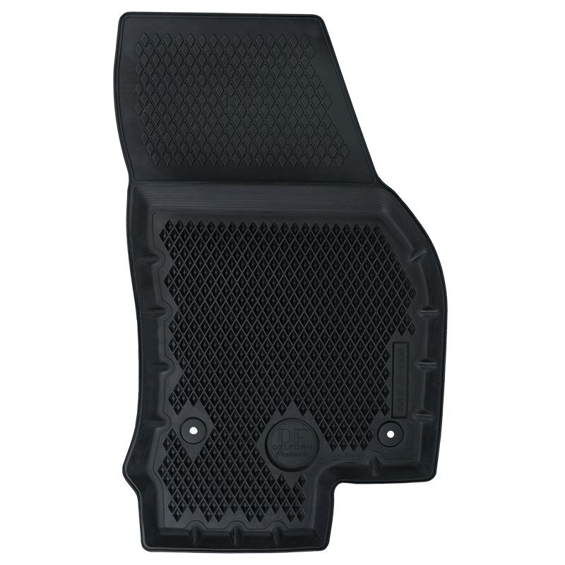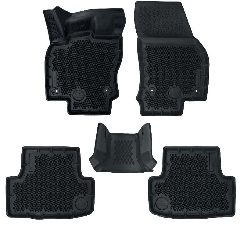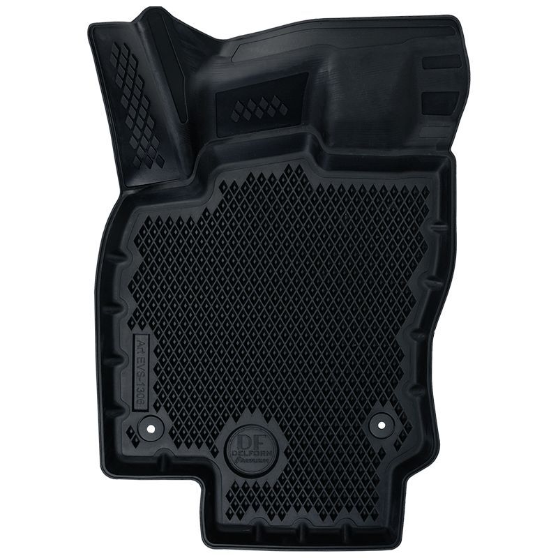 Ковры Delform EVS-1306 сделаны для Skoda Karoq и её близнеца Volkswagen Taos. Эти ковры похожи на привычные EVA ковры чёрного цвета с бортами, но сделаны из тяжёлого, плотного полиуретана. Их ячейки крупнее и глубже привычных, поэтому задерживают больше воды и легче моются. Ковры очень точно отформованы и идеально повторяют каждый изгиб пола. Чётко ложатся в штатные крепежи. Закрывают максимум ковролина. Коврик водителя полностью закрывает место под левую ногу и уходит глубоко под педали. Ковры не имеют запаха и не дубеют на морозе. Очень прочные и не нуждаются в подпятнике. Протереть их почти невозможно.