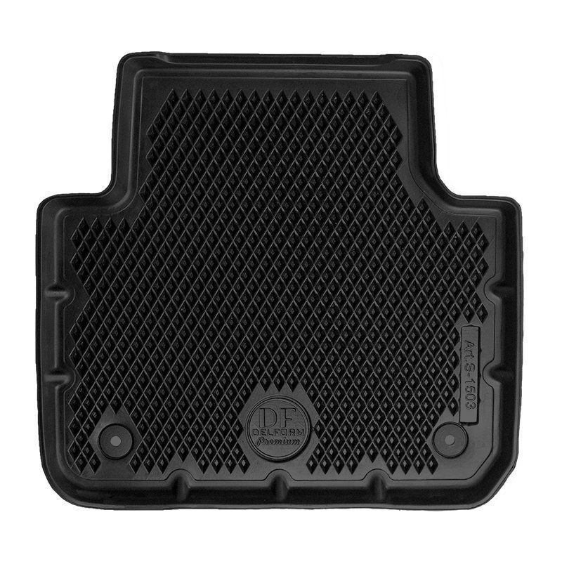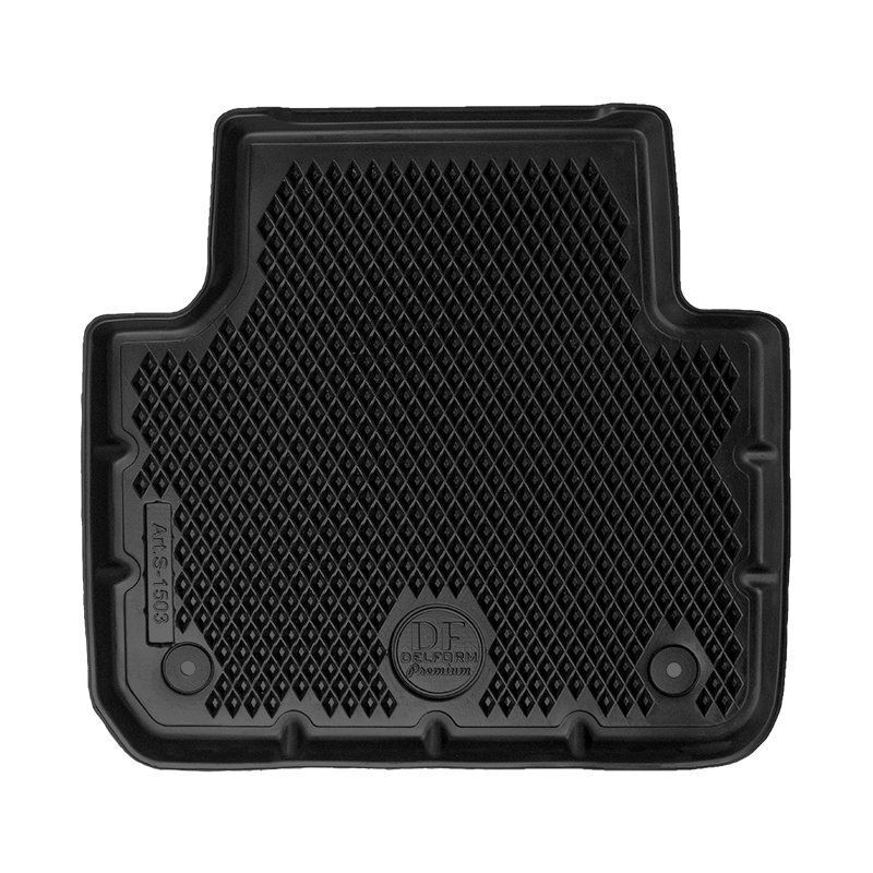 Ковры Delform s1503 сделаны для Туарега 3-го поколения 2018+. Эти ковры похожи на привычные EVA ковры чёрного цвета с бортами, но сделаны из тяжёлого, плотного полиуретана. Их ячейки крупнее и глубже привычных, поэтому задерживают больше воды и легче моются. Ковры очень точно отформованы и идеально повторяют каждый изгиб пола. Развиты по форме и закрывают всю поверхность пола. Чётко ложатся в штатные крепежи. Коврик водителя полностью закрывает место под левую ногу и глубоко уходит под под педали. Передние коврики закрывают даже пороги, вокруг металлической накладки. Ковры очень прочные и не нуждаются в подпятнике. Протереть их вряд ли получится. Не имеют запаха и не твердеют на морозе.