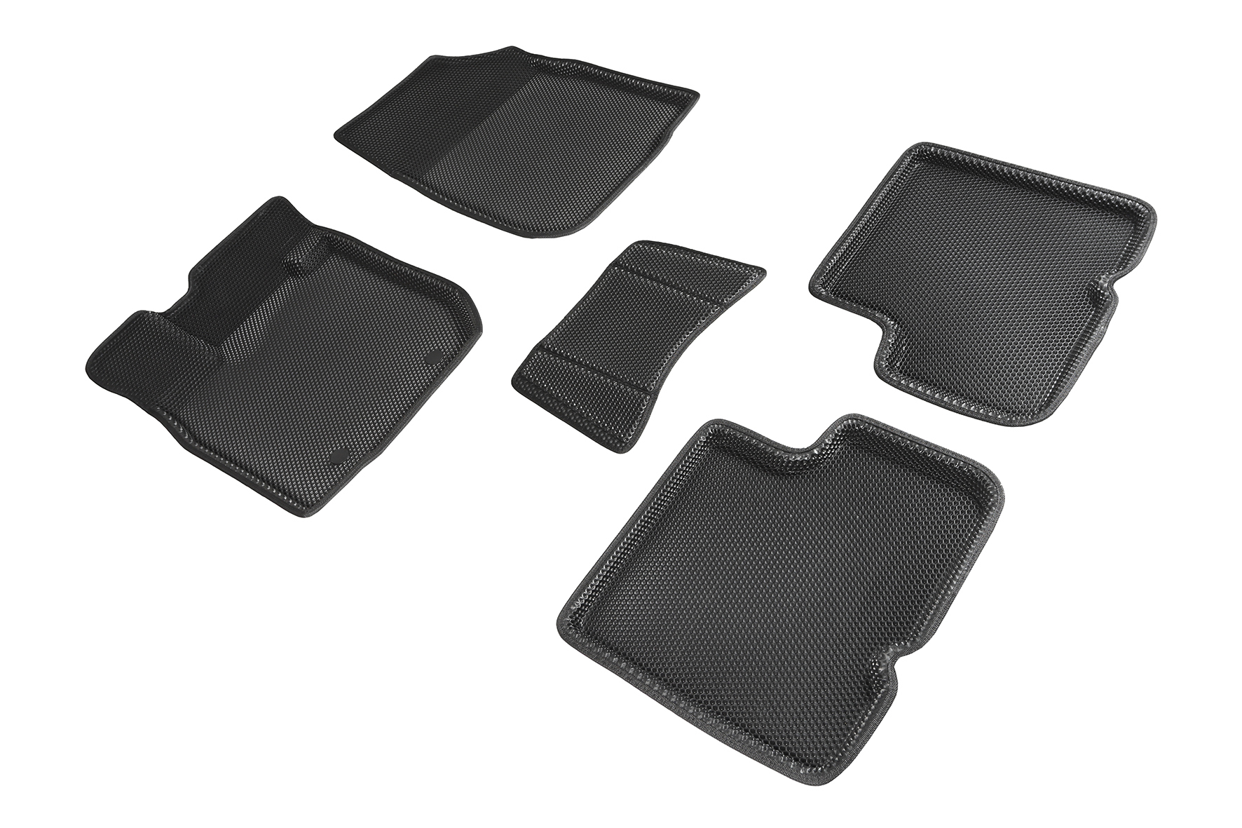 Ковры Seintex 95244 сделаны для Lada Largus в пассажирской версии для двух рядов сидений. Подходят также и на соплатформенный Logan 2004-14. Это качественные EVA ковры чёрного цвета с бортами и узором "сота". Ковры очень точно отформованы и идеально повторяют каждый изгиб пола. Ложатся в штатные крепежи. На обратной стороне ковра, по всей площади имеют нескользящее покрытие из щетинок. Оно не мешает поднимать ковёр вверх, но не даёт ему скользить в продольном направлении.