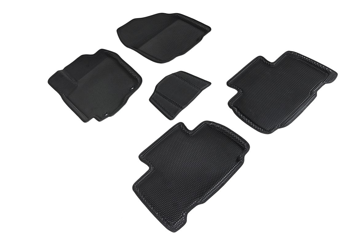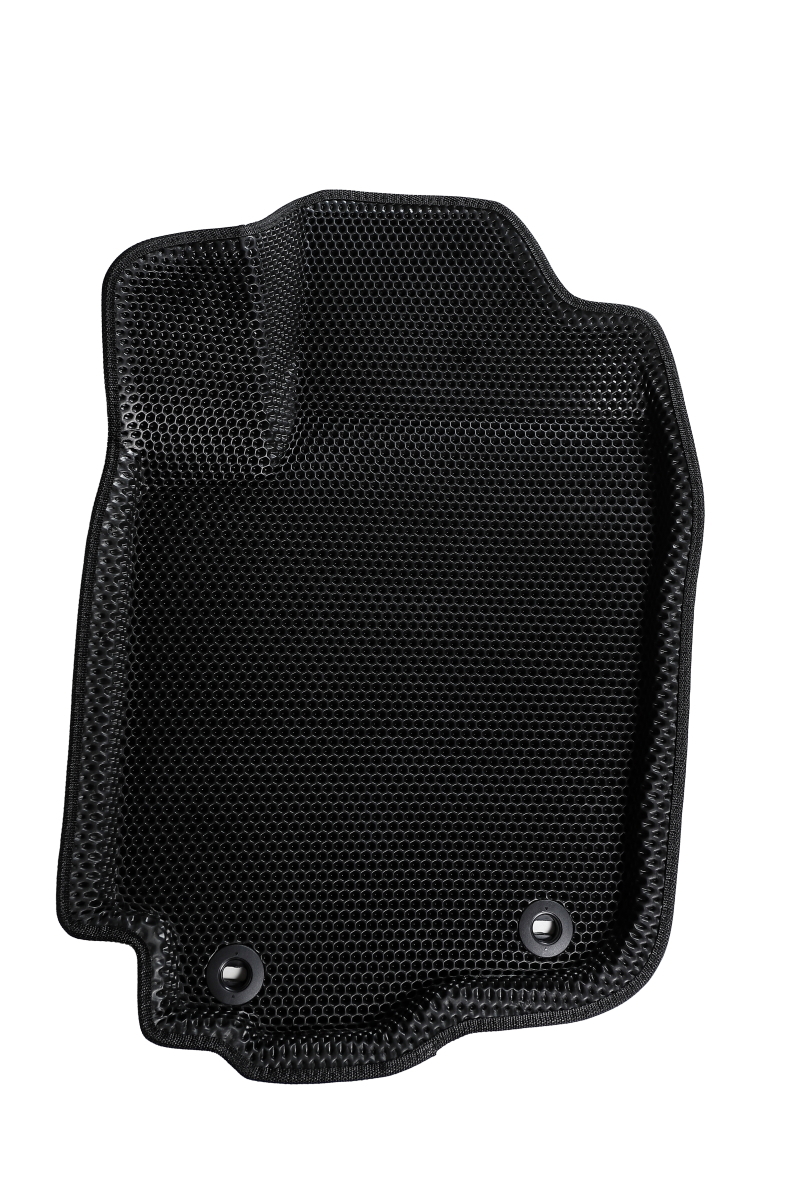 Ковры Seintex сделаны для Toyota RAV4 2013-19. Это качественные классические EVA ковры чёрного цвета с бортами и узором "сота". Ковры очень точно отформованы и идеально повторяют каждый изгиб пола. Ложатся в штатные крепления. На обратной стороне, по всей площади, имеют нескользящее покрытие из щетинок. Оно не мешает поднимать ковёр вверх, но не даёт ему скользить в продольном направлении.