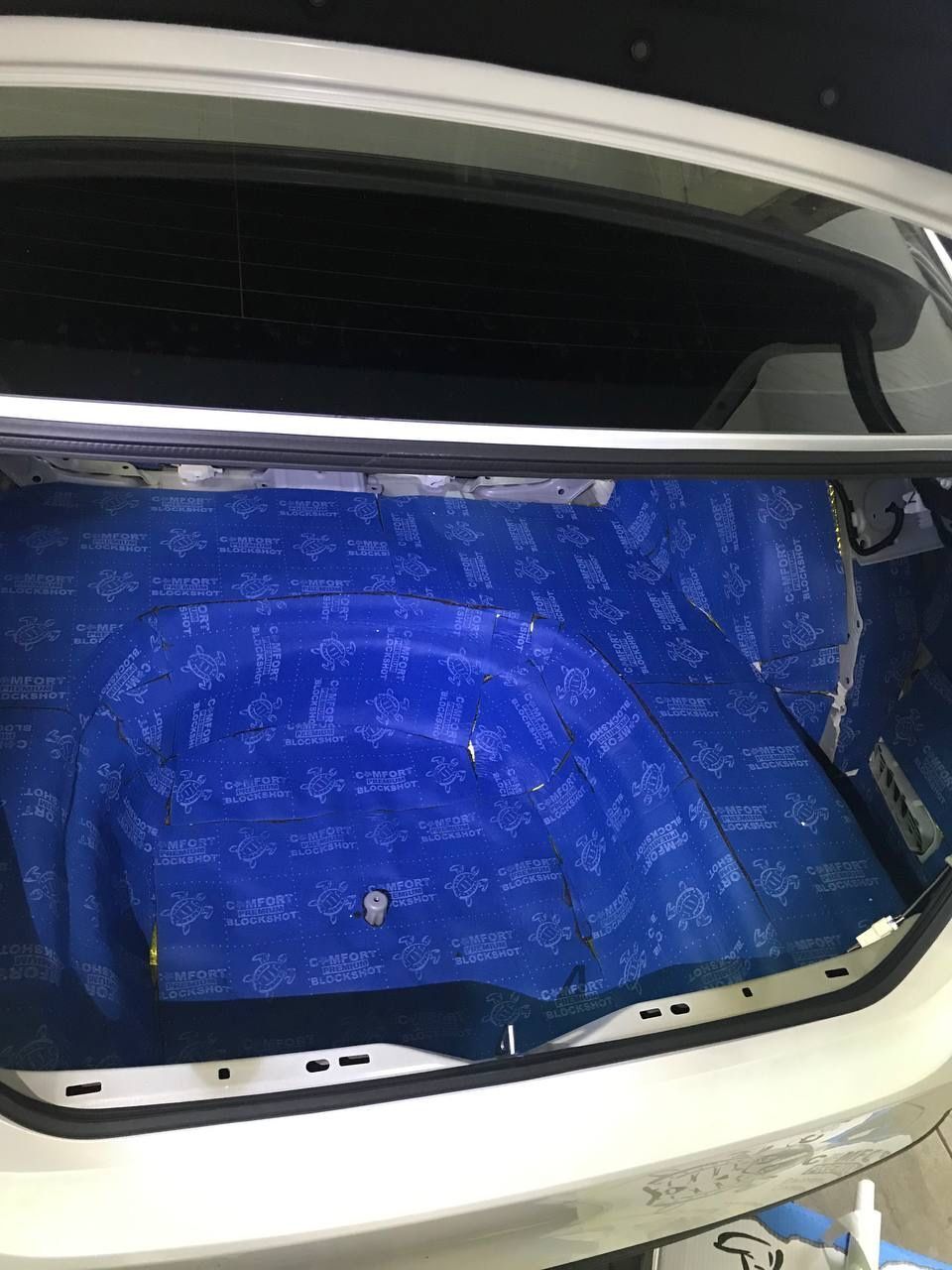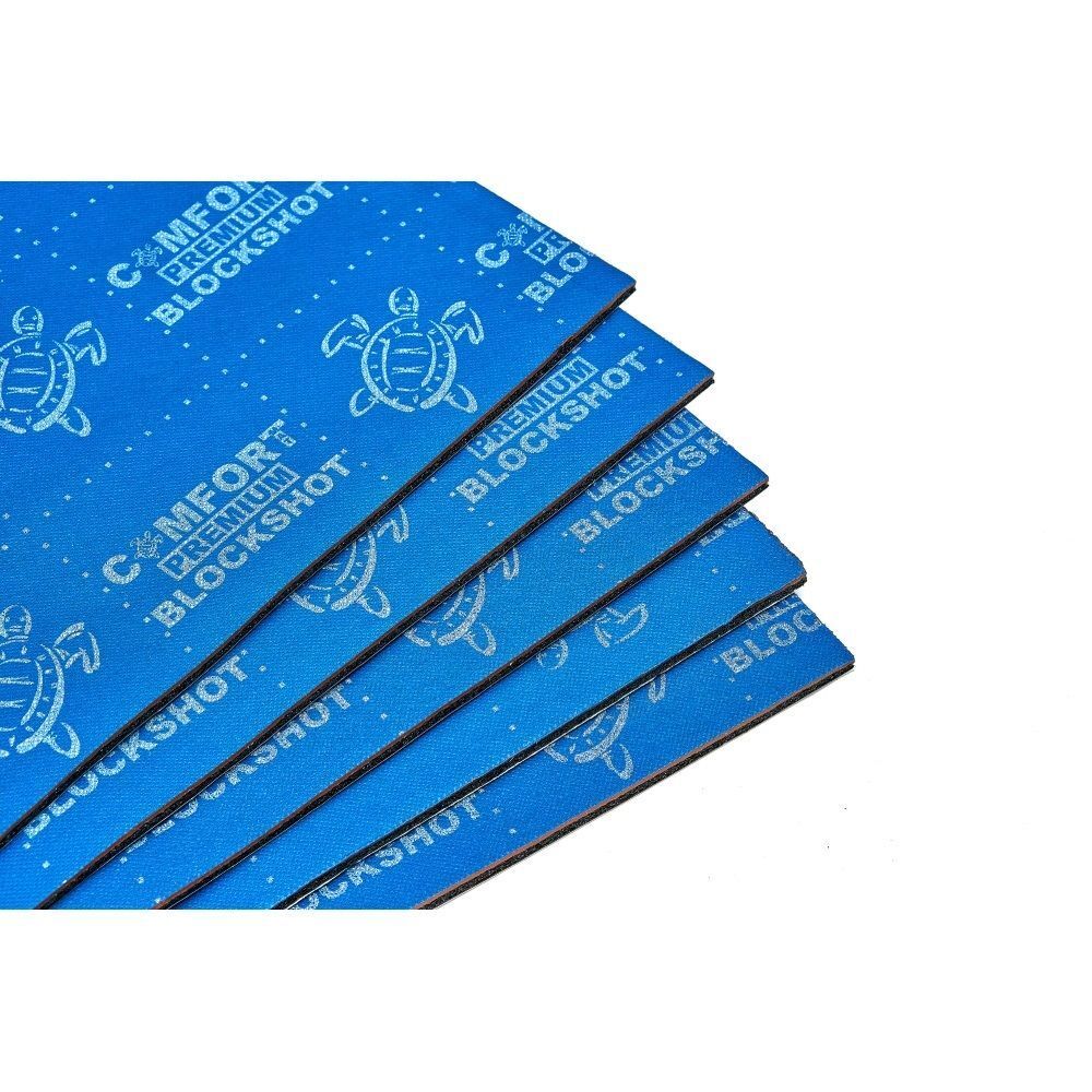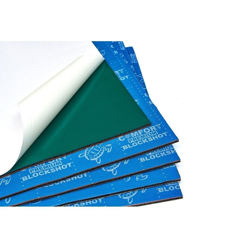 Comfortmat Blockshot-это первый на рынке мембранный трёхслойный материал для пола и сопутствующих поверхностей: арки колёс, моторный щит. Клеится вторым слоем на виброизоляцию. В своё время это был первый материал подобного типа, который допускает монтаж на вертикальную поверхность и совсем не боится воды. Материал имеет герметичный клеевой слой, который не отклеивается в воде. Имеет очень высокие показатели шумопоглощения и заслужил доверие профессионалов на рынке детейлинга и тюнинга. Этот материал широко применяется при шумоизоляции автомобилей и водной техники в лучших студиях.