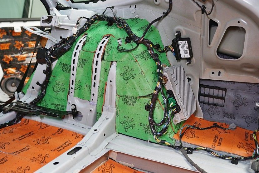 Comfortmat Titan-один из самых эффективных шумопоглотителей на рынке! Это самый тяжёлый и плотный мембранный материал в линейке Comfortmat. Сделан для самых серьёзных проектов и самых шумных зон: днище, моторный щит, колёсные арки. Состоит из толстой звукоизолирующей мембраны, покрытой нетканым полотном, слоя вспененного каучука повышенной плотности и клея-герметика. Этот материал совсем не боится воды. Может держаться на вертикальных и отрицательных поверхностях. Отлично подойдёт и для звукоизоляции канализационных труб в помещениях.