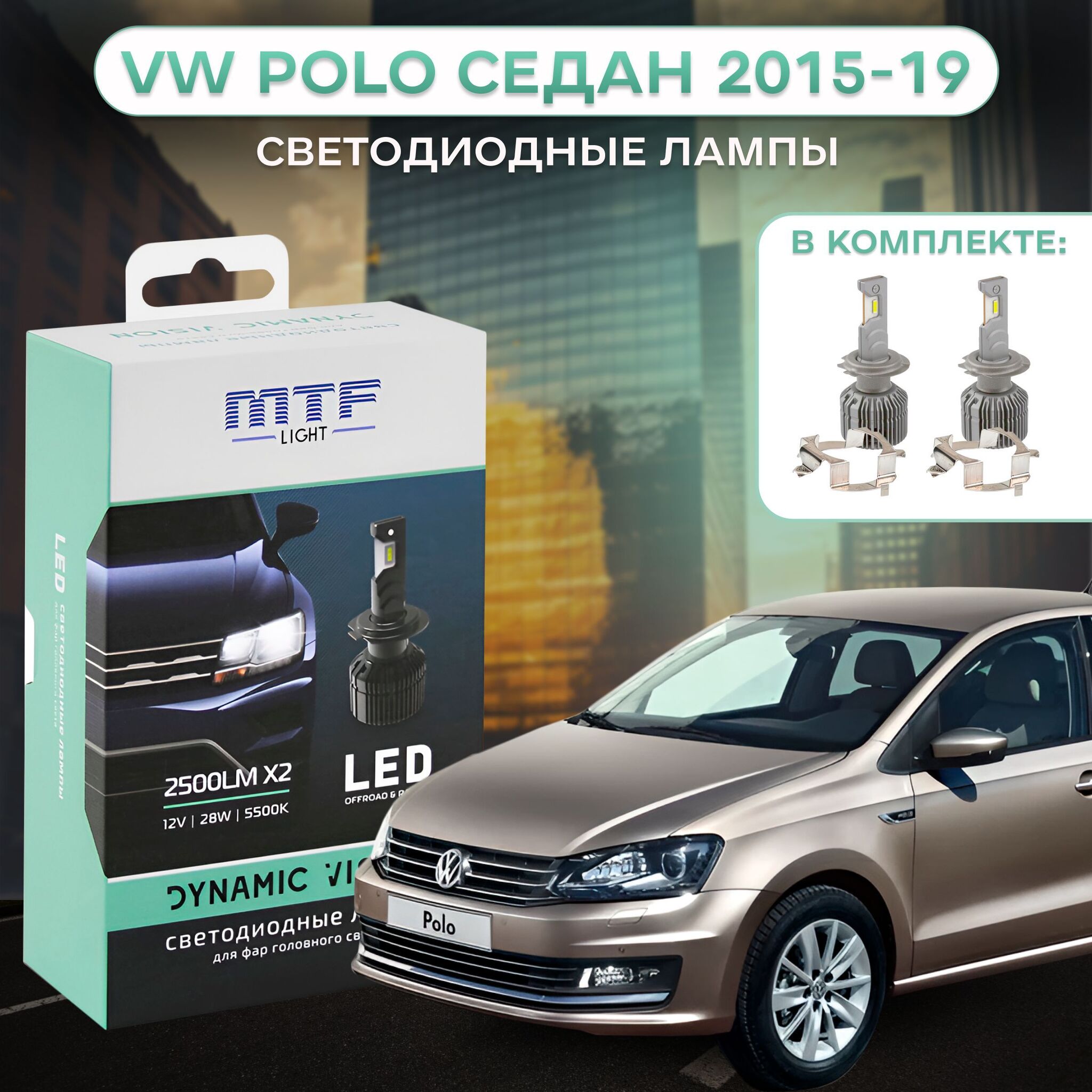 Лампы MTF Light Dynamic Vision-одни из самых популярных диодных ламп взамен галогена. Имеют среднюю светоотдачу, поэтому идеально подходят для рефлекторной оптики. Светят правильным белым цветом, без синего оттенка. Конкретно данный комплект предназначен для установки в ближний, а также дальний свет VW Polo седан в рестайлинге 2015-20. Также подойдёт для VW Jetta 6, Opel Astra J 2009-15.