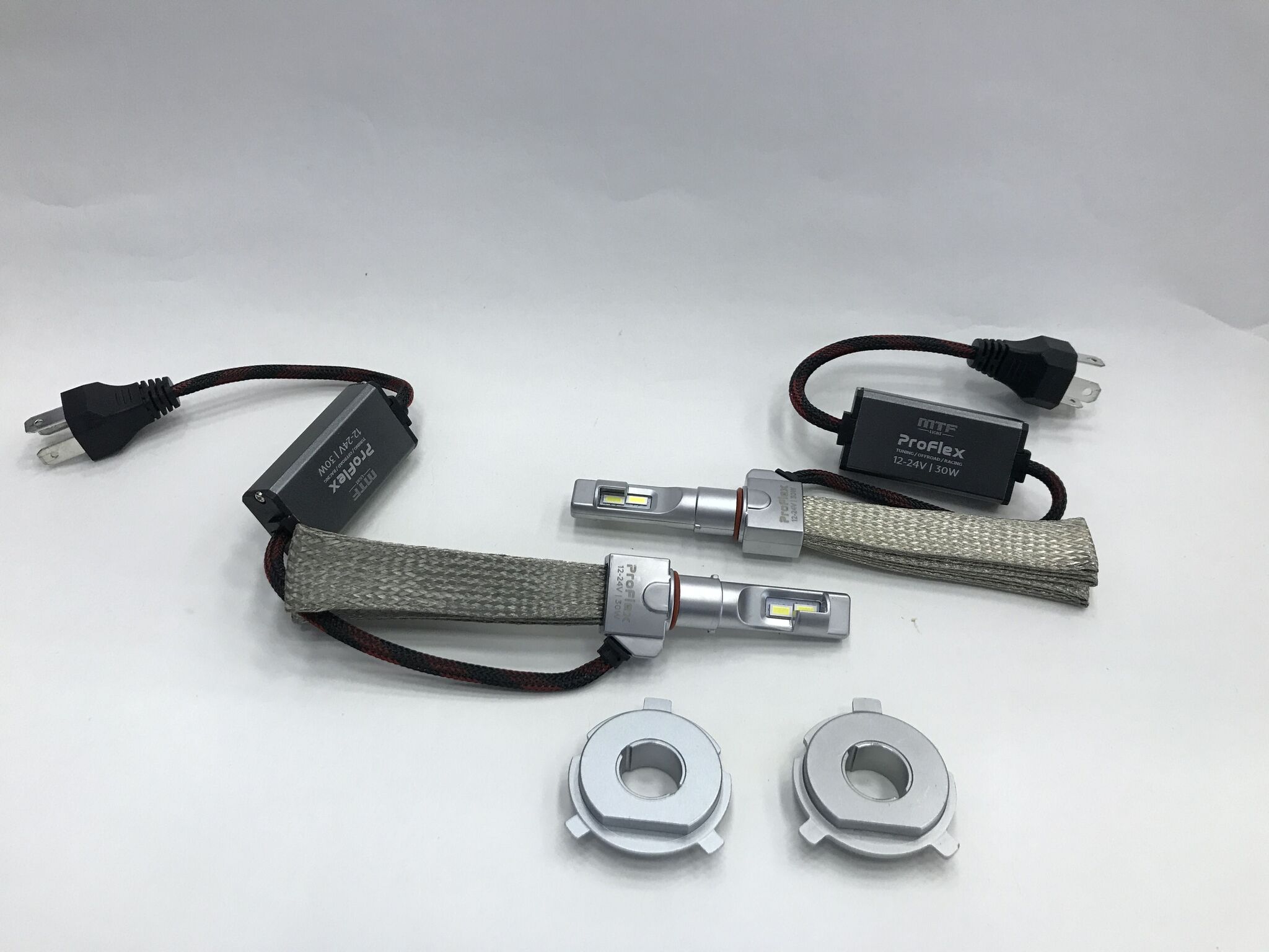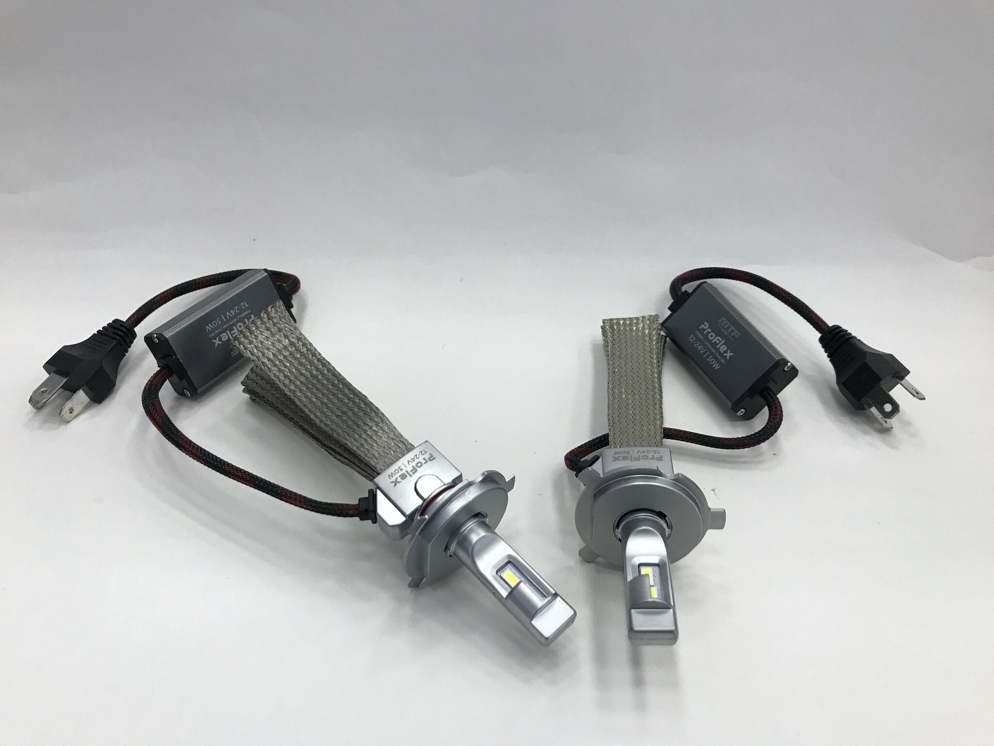 MTF Light ProFlex H4/H19-диодные лампы средней яркости с пассивным охлаждением. Новинка 2024 года. Это модернизированная версия прежнего поколения. Теперь лампы мощнее и лучше сфокусированы по свету. Также цоколь стал съёмным и лампу можно регулировать по наклону. Как и раньше питание 12-24V. Светят правильным белым цветом, без синего оттенка.