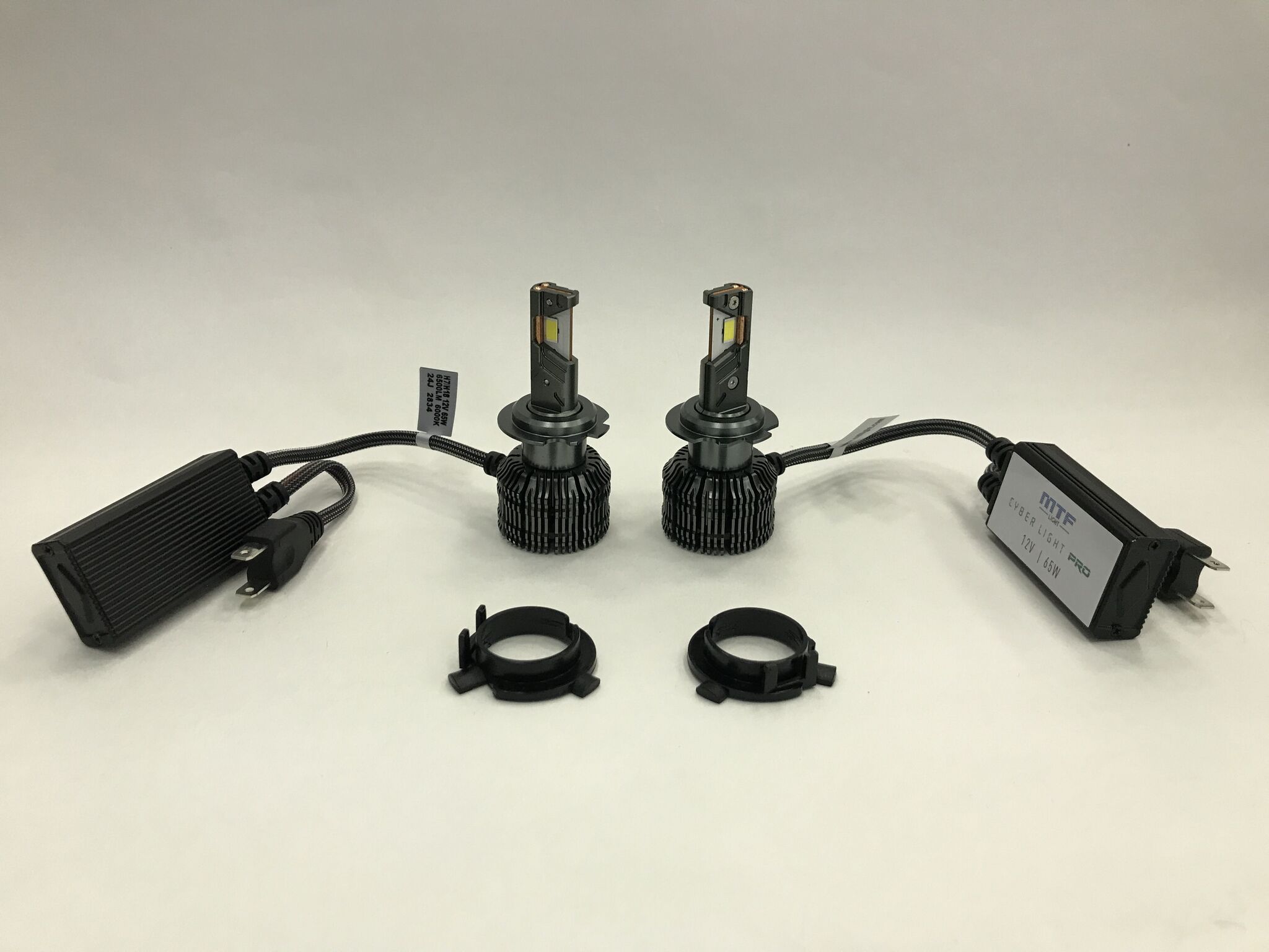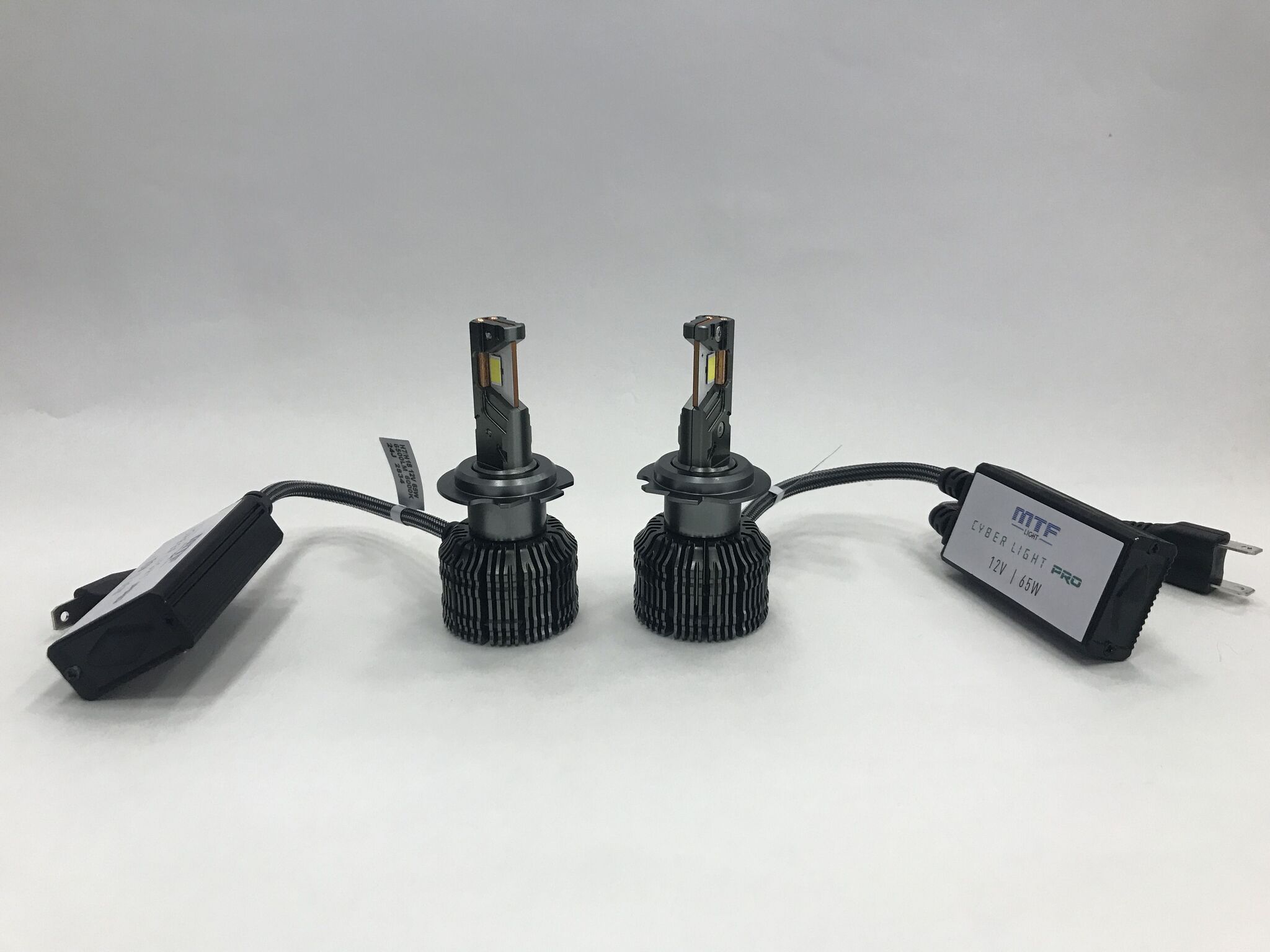 Лампы MTF Light Cyber Light PRO-одни из самых ярких диодных ламп взамен галогена. Имеют огромную светоотдачу 6500lm и мощность 65W, поэтому ПОДХОДЯТ ТОЛЬКО ДЛЯ ЛИНЗОВАННОЙ ОПТИКИ ИЛИ ДАЛЬНЕГО СВЕТА. Светят правильным белым цветом без синего оттенка. Подходят для фар, в которых достаточно места, чтобы разместить довольно крупный драйвер. Благодаря огромной яркости, будут светить даже в старых, выгоревших линзах. Отлично подойдут для старых немцев с линзами (Audi, Mercedes), китайские автомобили с линзой в ближнем свете и дальнего света с цоколем H7. При использовании в дальнем свете Вы получите настоящие прожекторы!